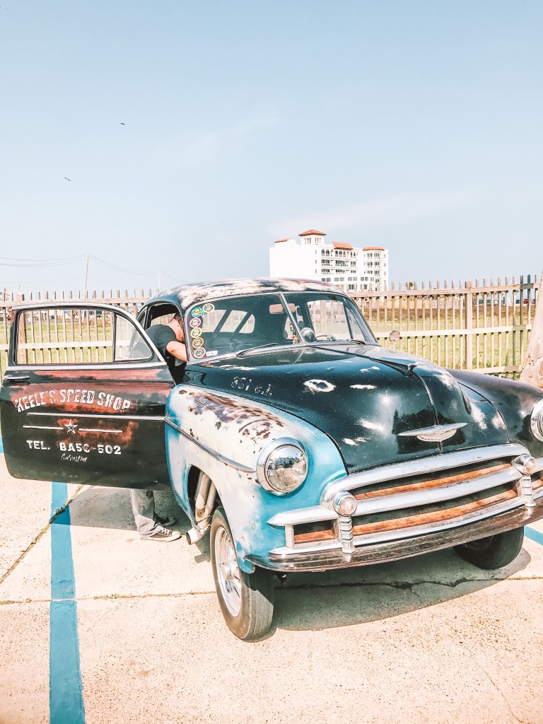 On a birthday trip back to Galveston, I was able to spend some time with one of my oldest friends since kindergarten, Smitty, and reconnect with my high school sweetheart, Derek. While Smit and I speak regularly and see each other often, Derek and I hadn’t seen each other in over 15yrs, and that’s just too damn long! I was sitting out on the balcony of the condo waiting for the guys to show up and watching for Smitty’s car when I heard her… Derek decided that our first time to reconnect in almost 20yrs needed to include a day cruising in a classic American hotrod. A 1950s gasser!