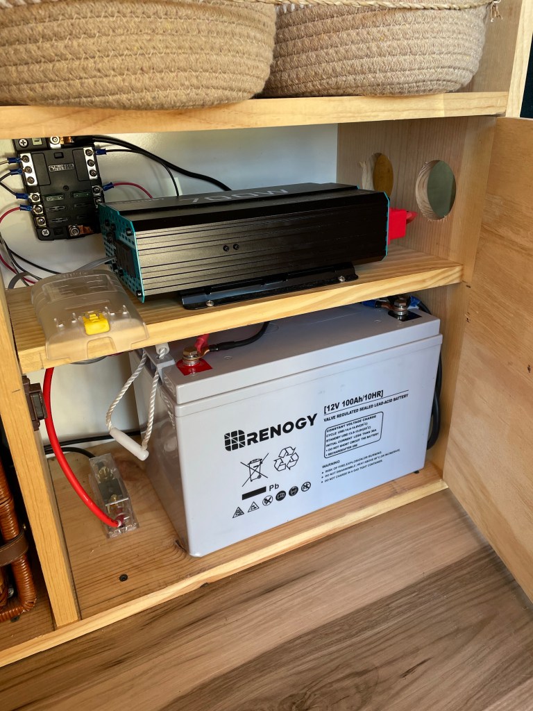 Once the cabinet was built, we placed it into the van, and secured it to the floor. From there, we worked on installing the different parts of the solar system.