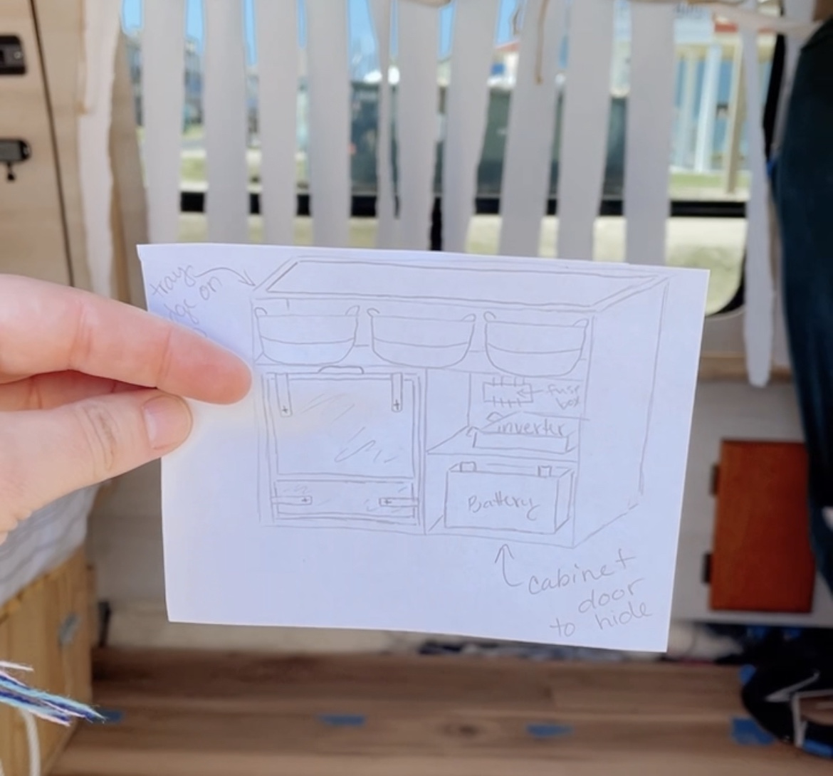 My van build is finally coming to an end! I have been adventuring in Zatara, unfinished, for a couple years now, but the time has come for the final step in the build! I needed a cabinet built to house all of the components for my solar set up, and maybe even a little extra storage.