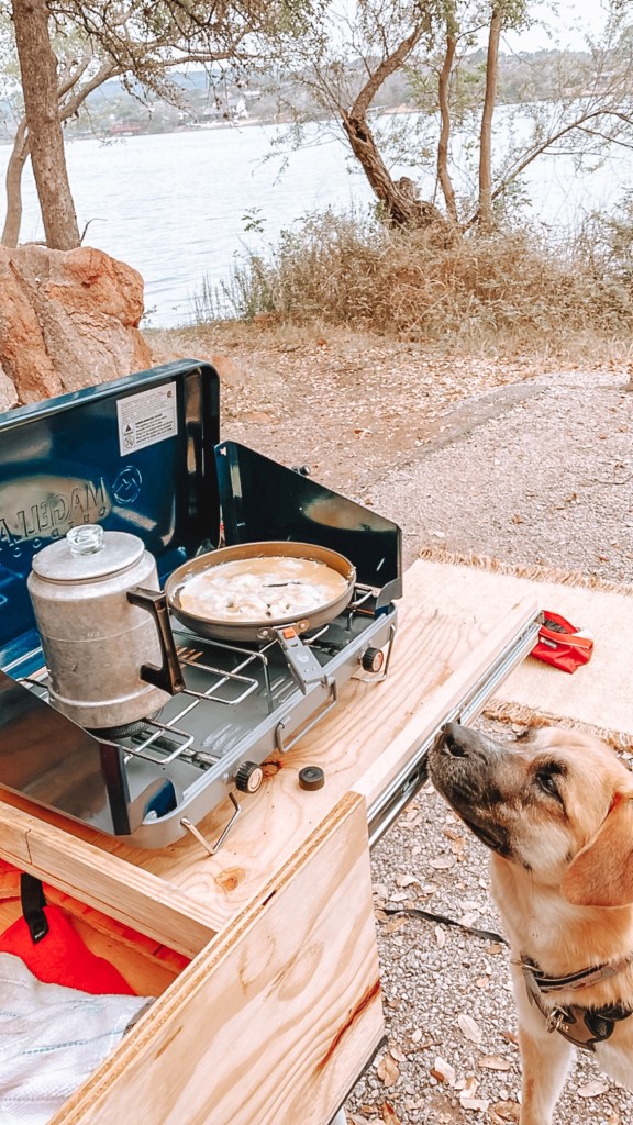 If you know anything about Texas, then you know our “camping” season is very short due to extreme heat and humidity, so I chose April, my birthday month, for our getaway since the evenings would be cool enough to sleep comfortably. I figured the water in the lake would still be pretty cold (it was!) but thought if we got hot enough while on the trails, the cold water would be refreshing.
