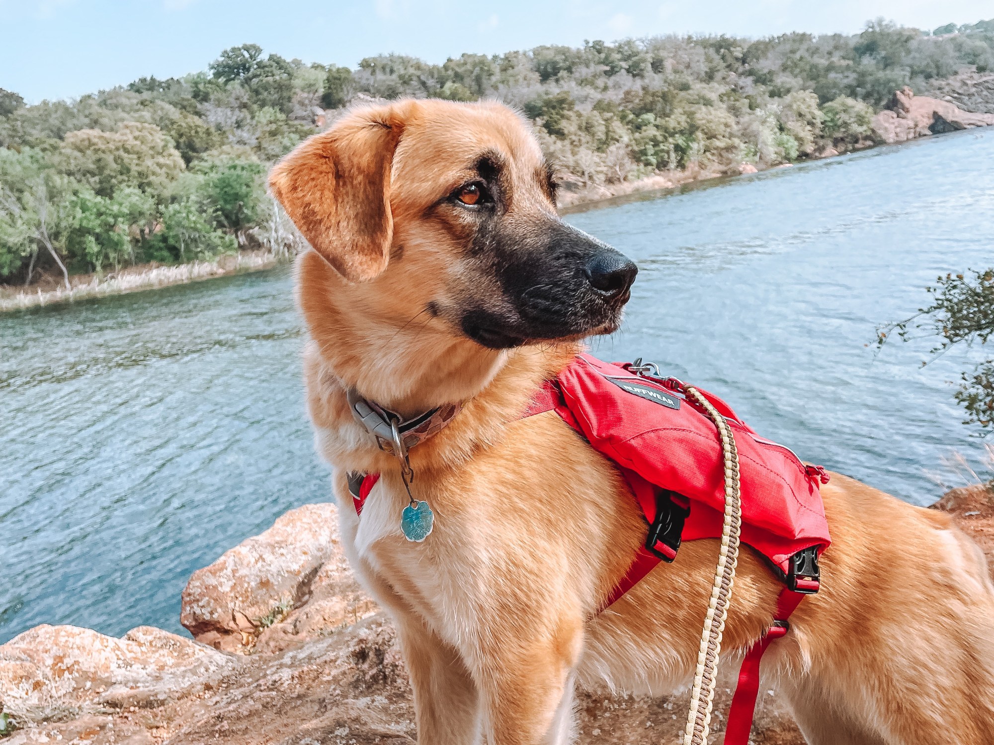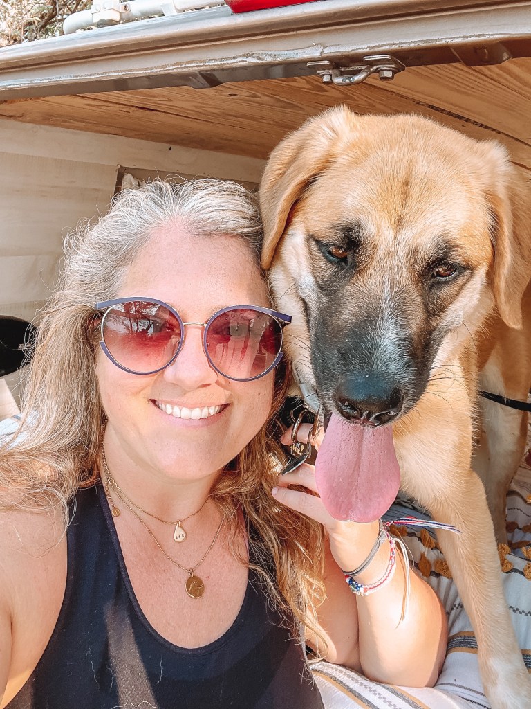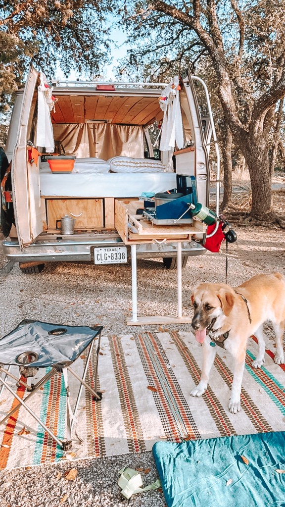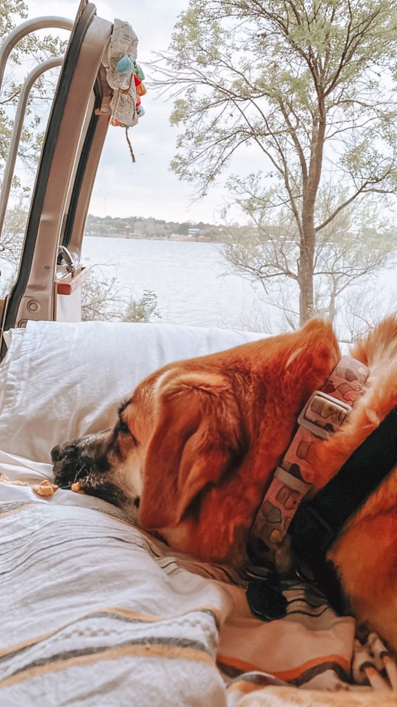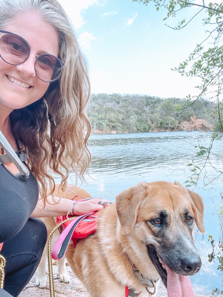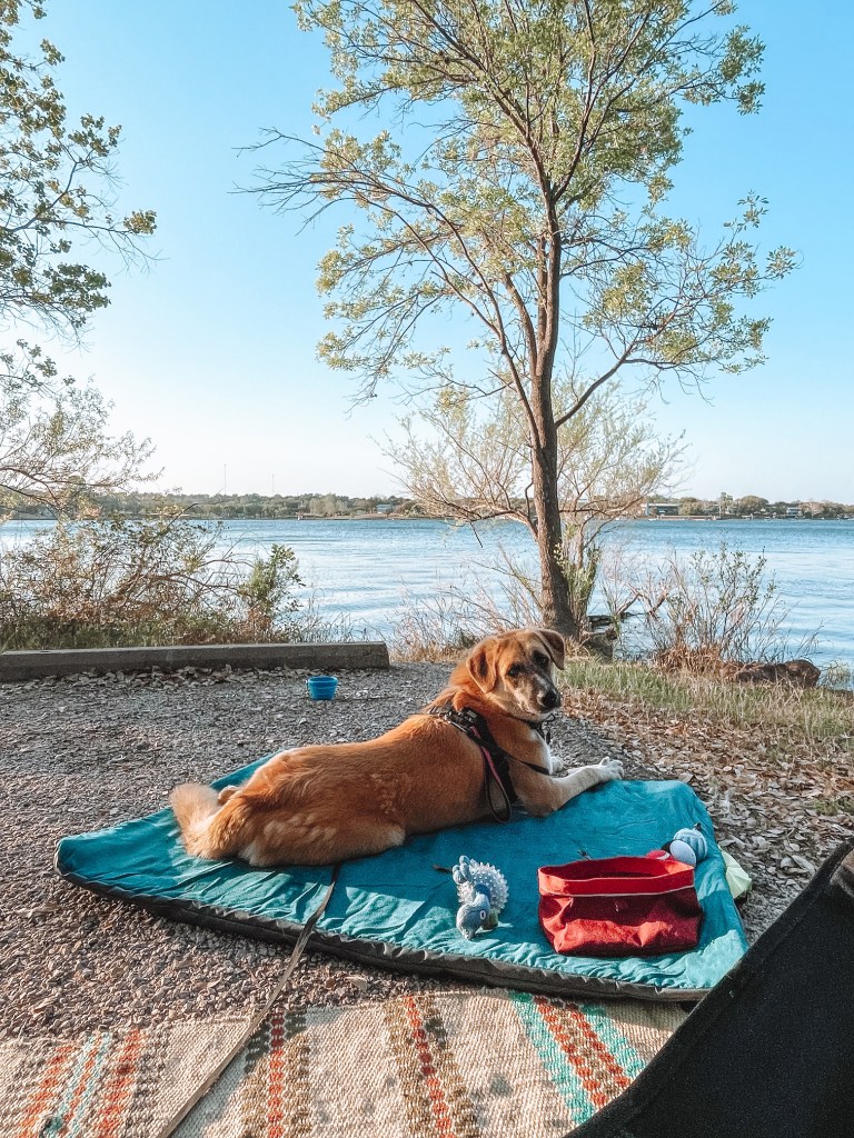 Before we hit the road to head out on our adventure, I made sure to outfit Lani for our trip. It’s important to carry enough water, and even food, for your pups when you take them on adventures with you, especially when in a very hot climate like Texas. I invested in a day pack from Ruffwear for my girl which allowed her to carry her own water, snacks, and poop bags (link to her pack, here, not sponsored I just love it!). Wearing a harness is not her favorite thing, but she got used to it, and having water easily accessible for her was really nice.