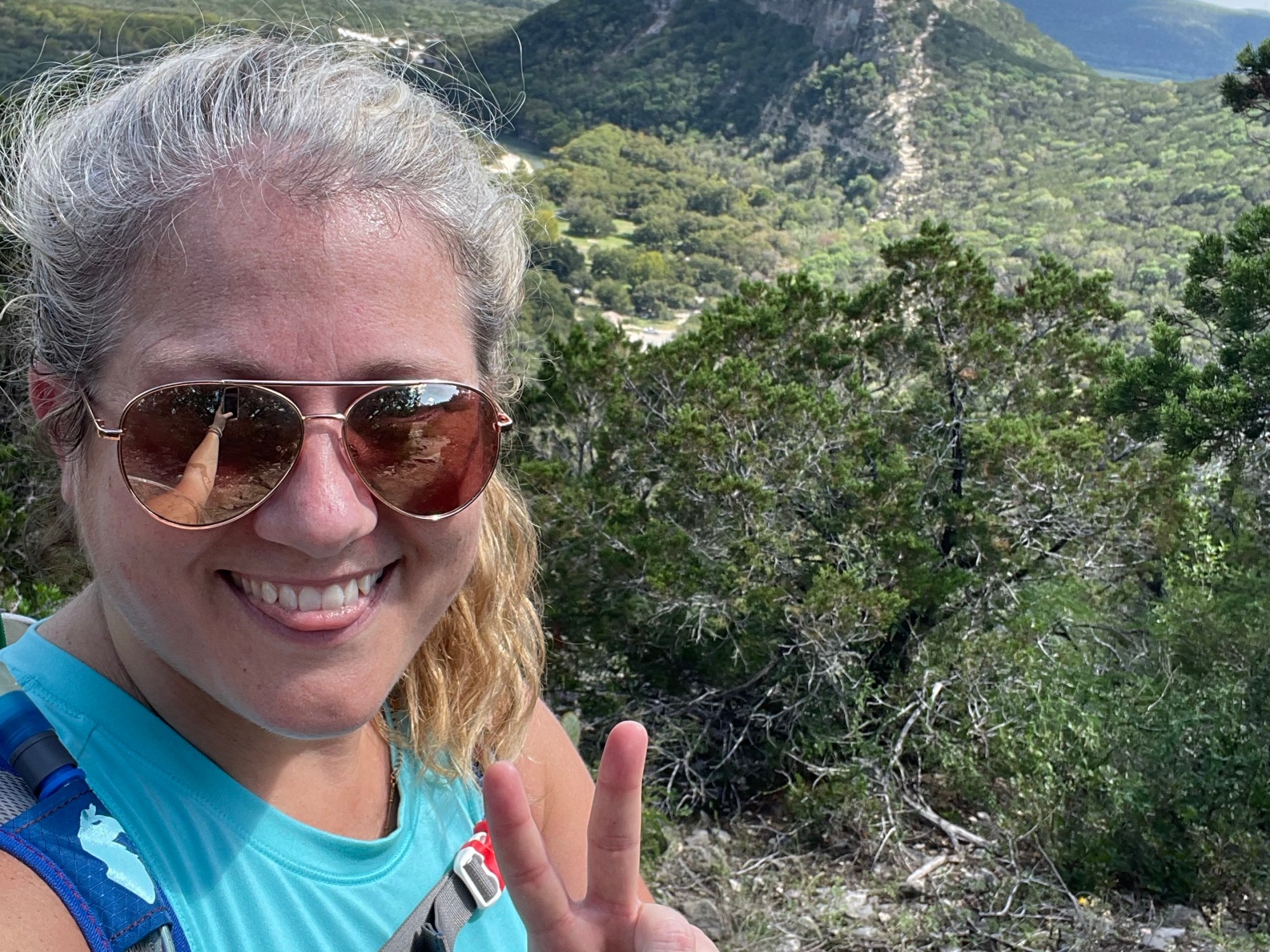From there, we jumped on the Bridges trail which led us to the Wilks trail and allowed us to jump on the Ashe Juniper trail providing an incredible viewpoint of the backside of Old Baldy, the highest point in the park. After taking a breather, soaking in the vistas and drinking a ton of water, we made our way back down. We hiked a total of 13.6 miles that day! Needless to say, we both slept very well that night.