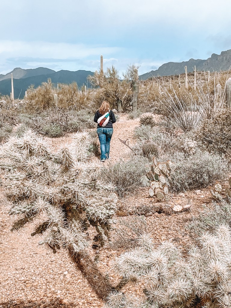 We loved this stop! The dessert landscape full of jumping chollas and towering saguaro cacti were beautifully set against an ominous sky as a storm seemed to be pushing in.