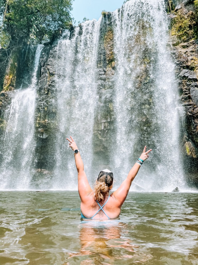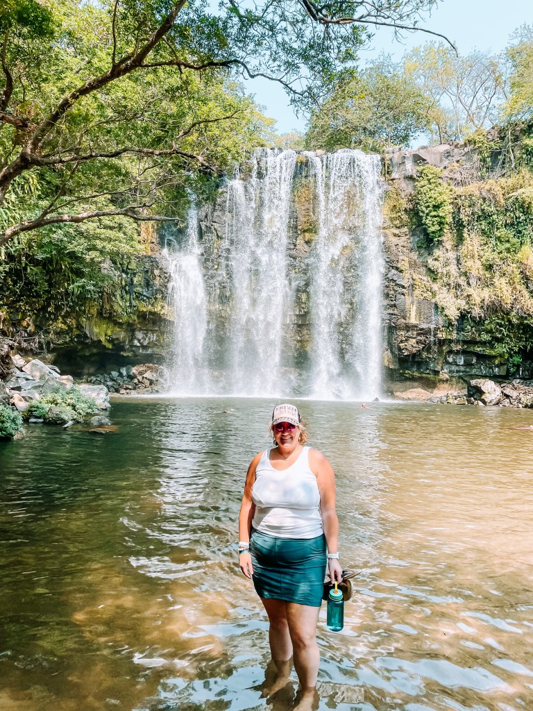We had three full days in Costa Rica. Our first full day we spent at the resort, relaxing by the pool and enjoying all the delicious food at the various restaurants on site. Our second full day was spent touring the area with Nelson. We met him and our driver, Roger, on the beach after breakfast and didn’t return to the hotel until after dark! When you book a tour with Brothers, you get one on one service with your guide and don’t have to worry about being shuffled around in a large group of tourists. Our first stop was the waterfall, Llanos de Cortez. Costa Rica has many beautiful waterfalls, but you can actually get in the water here and swim right up to the falls! There is a mineral in the soil that shimmers like flecks of gold, and the water is refreshingly cold. I will be forever grateful to Nelson for getting his clothes wet so he could get pictures for us. We got all the great content because he was always grabbing our phones and would just start snapping and recording!