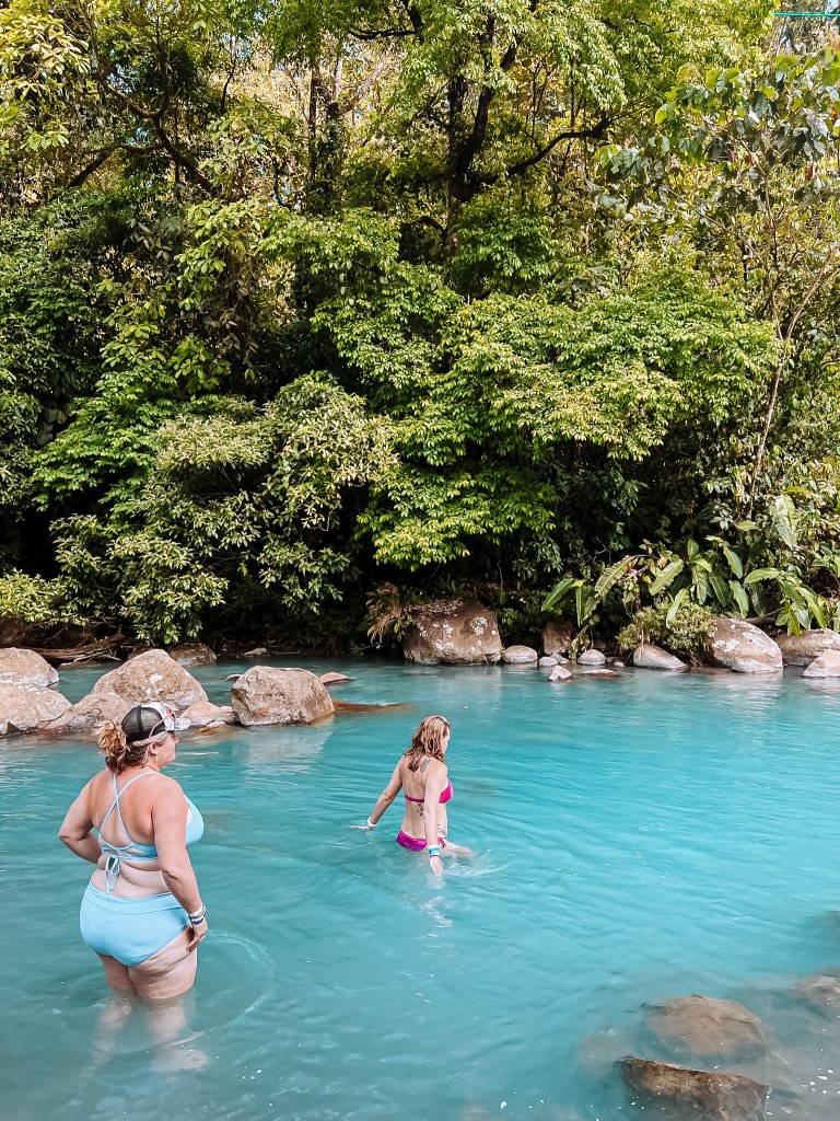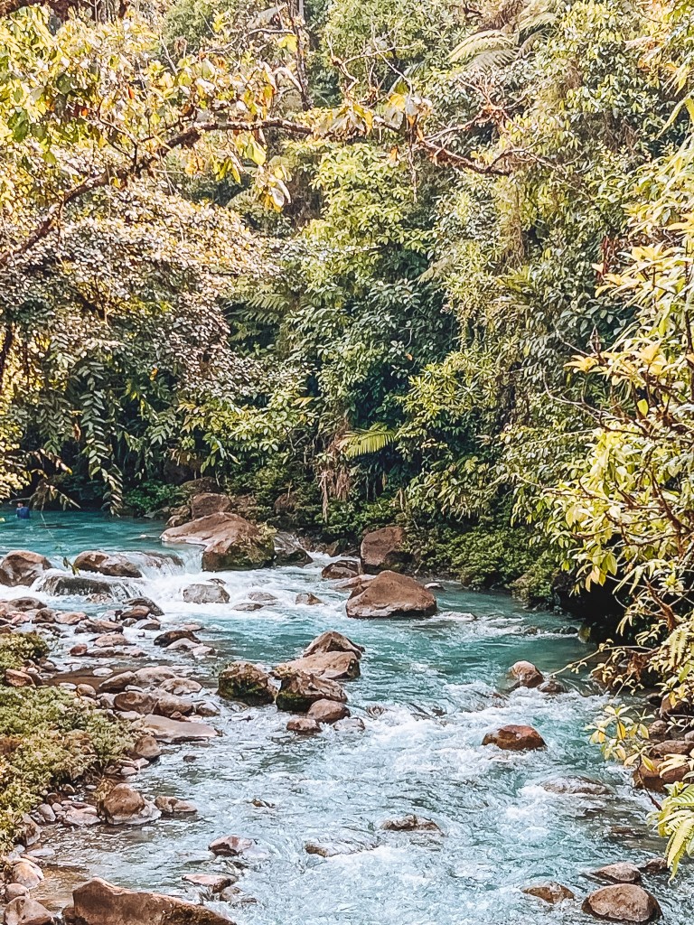 Once we were looking fabulously younger from our mud bath, HA, we moved on to our third stop for the day. The famous blue river is created when two rivers, Tenorio and Celeste, converge and the minerals from the river and volcano create the famous blue color. In order to avoid the crowds of Tenorio Volcano National Park, Nelson took us to a local spot where we could experience the river. We pulled off on the side of the road and could immediately hear the roar of Rio Tenorio before we could see it.